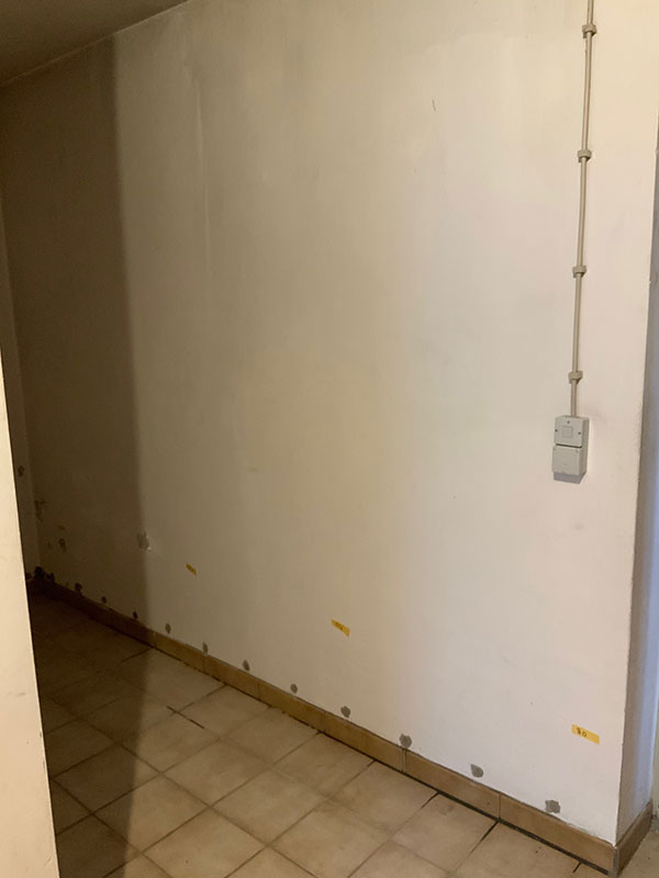 Art und Umfang der Arbeiten: Horizontalsperre + Entfeuchtungsputz