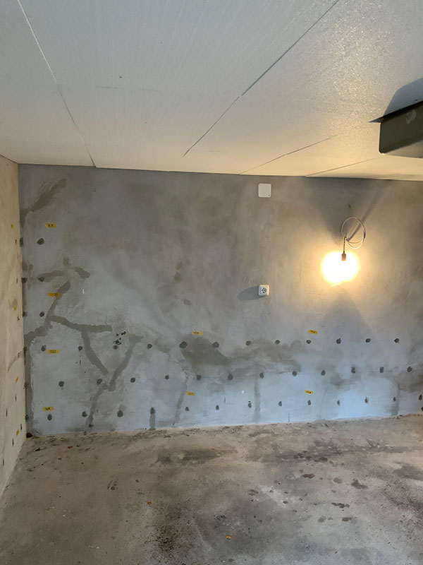 Art und Umfang der Arbeiten: Harzverpressung gegen Druchwasserschaden, Sperr-Innenputz-System
