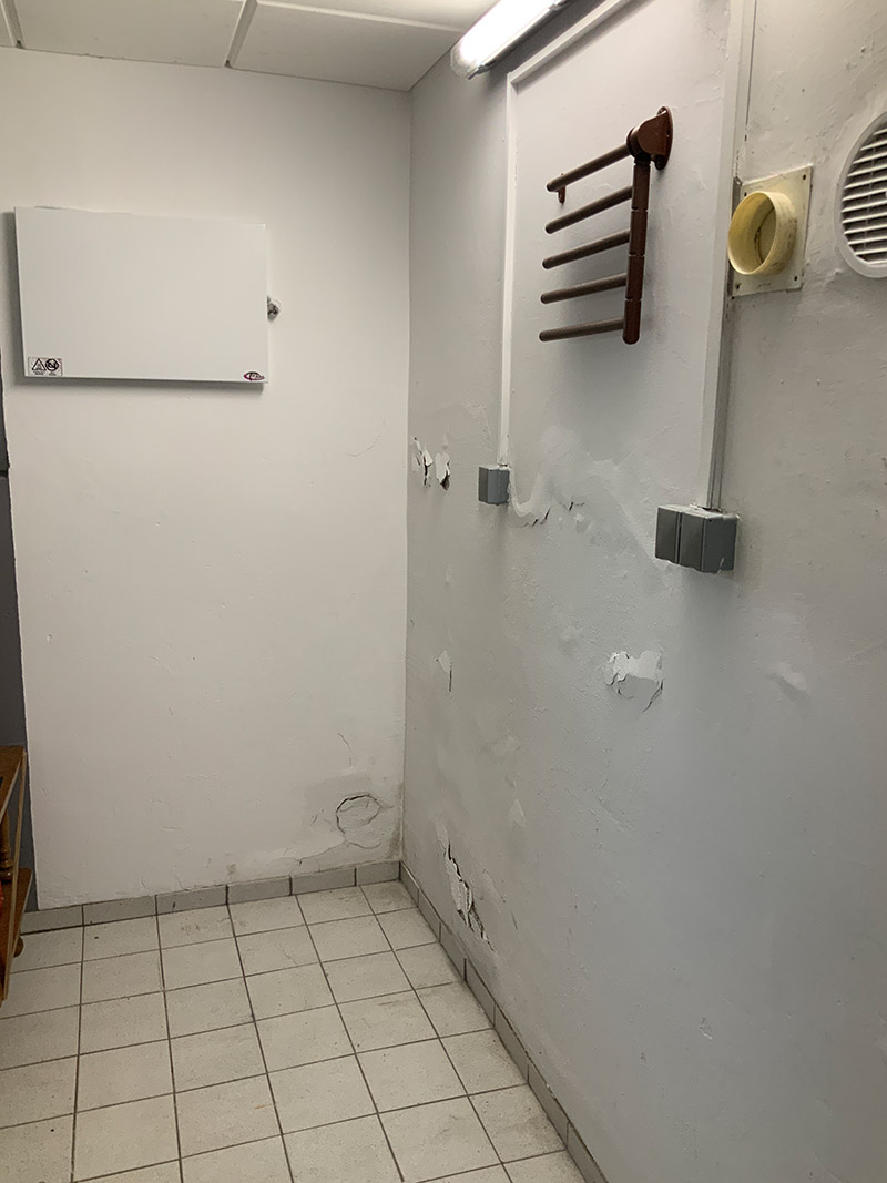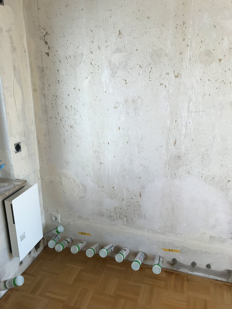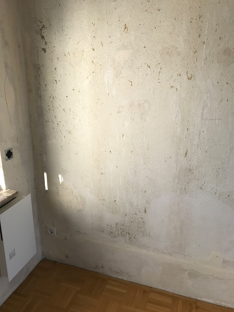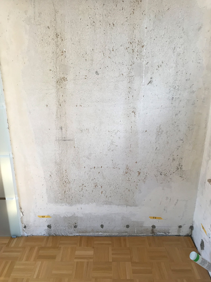 Art und Umfang der Arbeiten: Flächensperre + Sanier-Innenputz-System
