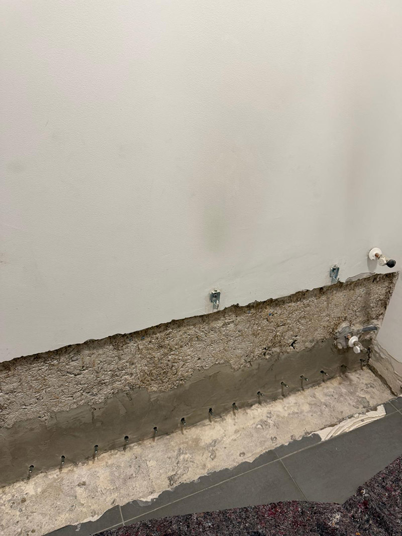 Art und Umfang der Arbeiten: FL Sperre, Sanierputz mit Bodenwandanschluss